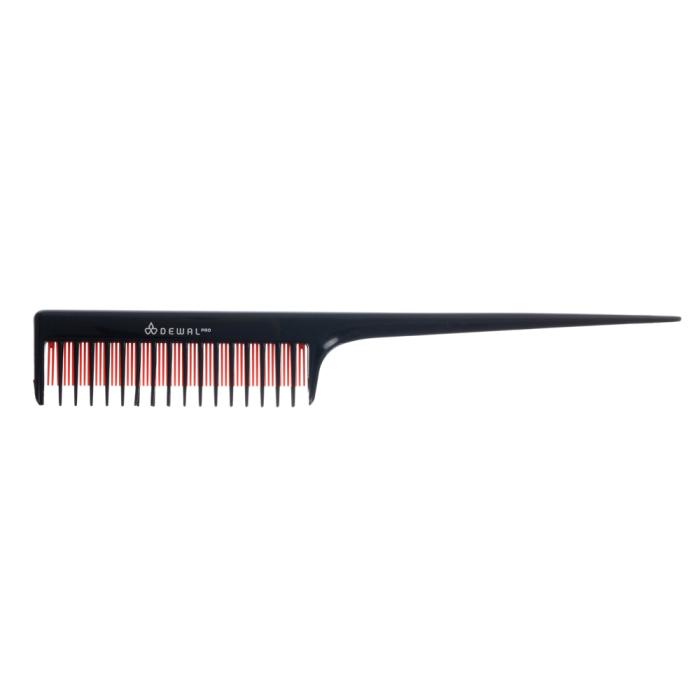 Расческа для начеса с пластиковым хвостиком 3-х рядная черная с красным 205см