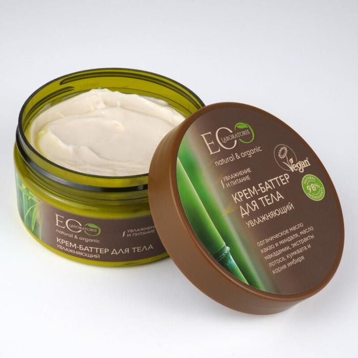 Увлажняющий крем-баттер для тела EO Laboratorie®, благодаря активным ингредиентам в составе, глубоко питает кожу, повышает ее эластичность, замедляет процесс старения. При регулярном использовании кожа нежная, бархатистая при прикосновении. Активные ингредиенты:Масло какао и миндаля оживляют и тонизируют кожу, делая ее нежной, гладкой и сияющей. Масло макадамии способствует хорошему увлажнению и смягчению кожи, устраняет сухость и шелушение, освежает и тонизирует кожу. Экстракт лотоса увлажняет и питает кожу, делает ее более эластичной, борется с признаками старения. Экстракт кумквата насыщает кожу витаминами, помогает удерживать влагу в коже.Экстракт имбиря оказывает подтягивающий эффект, а также стимулирует, регенерирует и тонизирует клетки кожи.