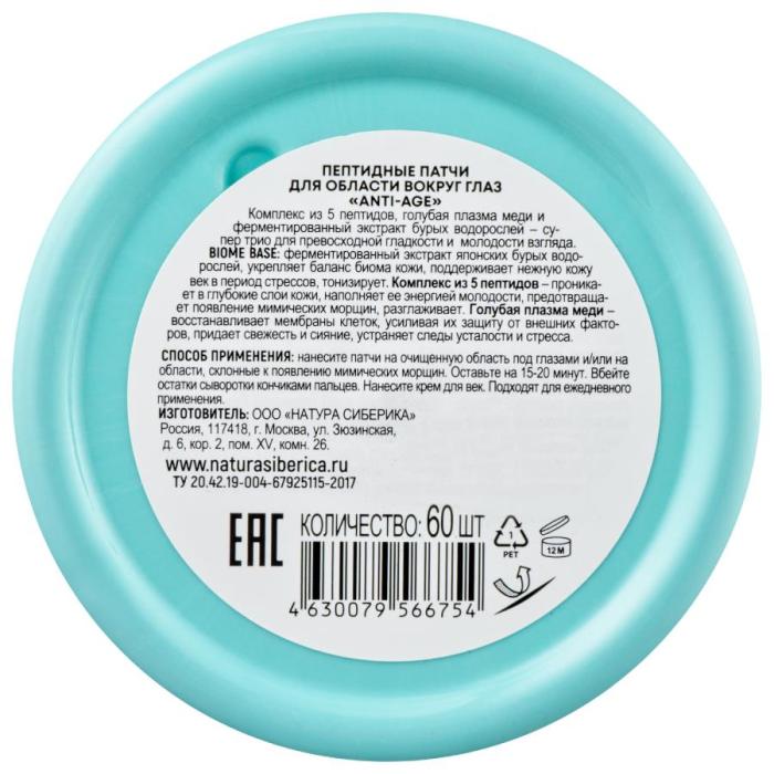 Lab Biome Патчи для области вокруг глаз пептидные Anti-Age 60 шт