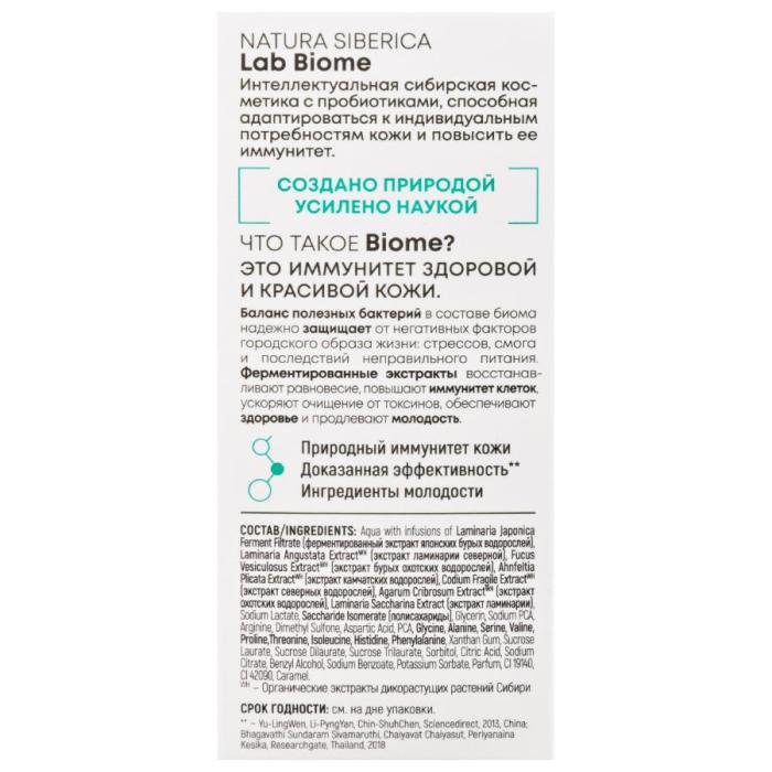 Biome base: ферментированный экстракт японских бурых водорослей укрепляют баланс биома кожи и ее сопротивляемость последствиям городского образа жизни, оказывает мощный восстанавливающий эффект и активизирует обменные процессы в клетках.