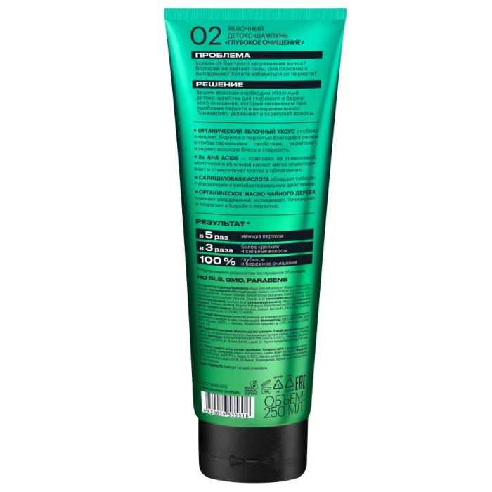 NP Apple organiс Шампунь-детокс для волос глуб.очищение яблочный 250 мл