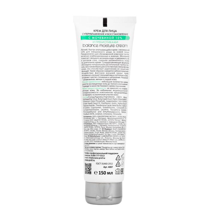 Professional Крем для лица супер увлажнение и восстановлениес мочевиной10% и пребиотиками Balance 150 мл