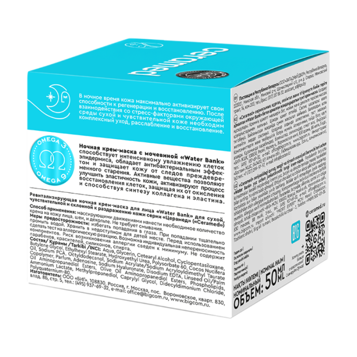 Ceramed Крем-маска для лица ночная ревитализирующая Water Bank 50 мл