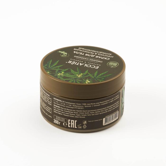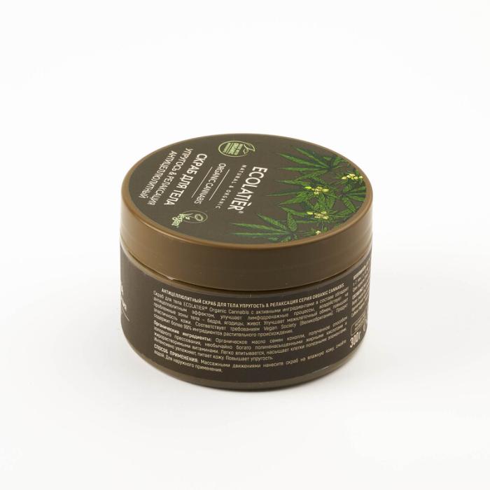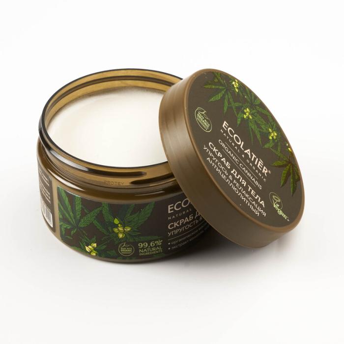 Скраб для тела ECOLATIER® Organic Cannabis с активными ингредиентами в составе обладает антицеллюлитным эффектом, улучшает лимфодренажные процессы, воздействует на проблемные зоны тела – бедра, ягодицы, живот. Улучшает межклеточный обмен, повышает эластичность кожи.