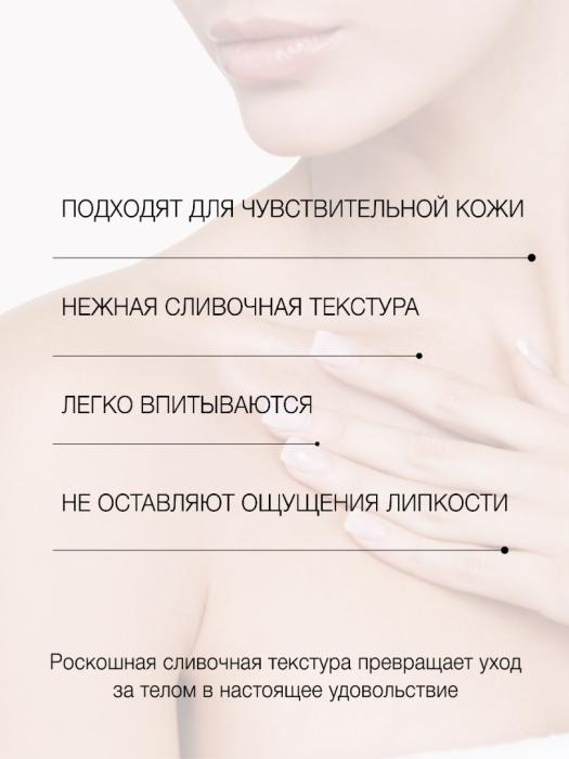 Восхитительно нежное молочко для тела благодаря своей лёгкой текстуре быстро впитывается и интенсивно ухаживает за кожей. Обогащенное комплексом драгоценных масел оливы, бабассу и Ши, витаминов и натуральных экстрактов, молочко питает и увлажняет кожу, повышает упругость и эластичность, придаёт здоровое сияние, мягкость и шелковистость. Тонкий аромат дарит чувство комфорта и эмоционального благополучия.
