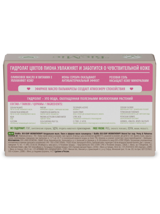 BIO-SOAP AROMATHERAPY Натуральное мылоПион и эфирное масло пальмарозы