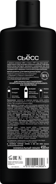 "Шампунь для волос Сьесс «Repair» — профессиональный подход к красоте женских волос