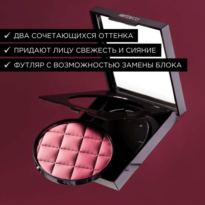 Двухцветные румяна Blush Couture мгновенно освежают цвет лица благодаря двум идеально подобранным оттенкам с бархатистой текстурой. Наносите их по отдельности или смешайте, чтобы получить ваш оптимальный цветовой нюанс – и наслаждайтесь естественным и стойким результатом. Благодаря мягкой и нежной текстуре румяна очень легко растушевываются и комфортно ощущаются на коже.