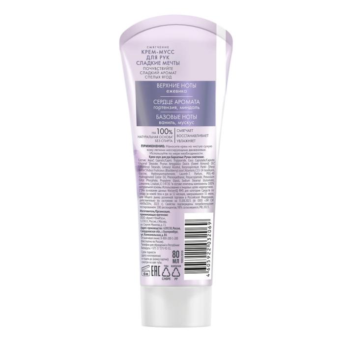 Крем-мусс для рук парфюмированный с соком сладкой ежевики и нотами гортензии смягчение 80 мл