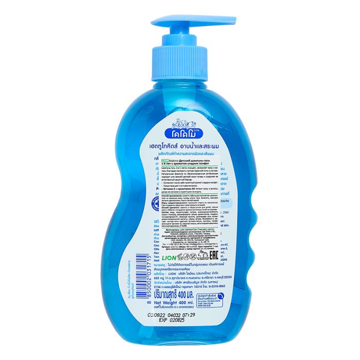 Шампунь-гель Lion Kodomo для детей с 6 лет с ароматом сладких конфет. Содержит экстракт листьев перечной мяты, который обладает свойством уменьшать накопление бактерий.