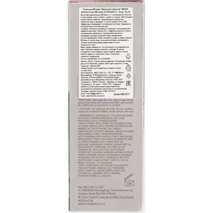 М Perfect Cover BB Cream EX Тональный BB крем Идеальное покрытие SPF42 PA № 20, 20мл