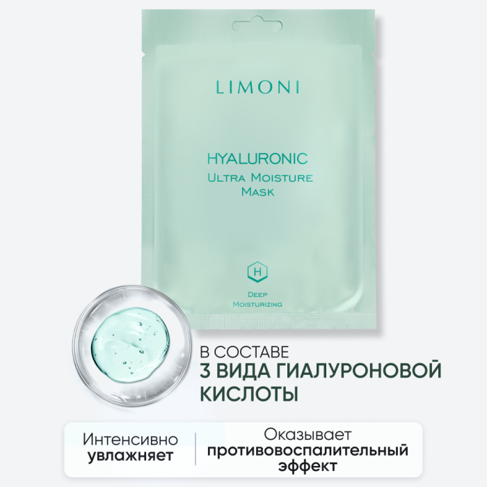 Тканевая маска с гиалуроновой кислотой увлажняет и питает сухую кожу лица. Пропитана высококонцентрированной эссенцией, помогающей улучшить структуру кожи. Маска с гиалуроновой кислотой обладает высокими влагосберегающими свойствами, способствуя омоложению кожи. Нормализирует обменные процессы в тканях, повышает упругость и эластичность.
