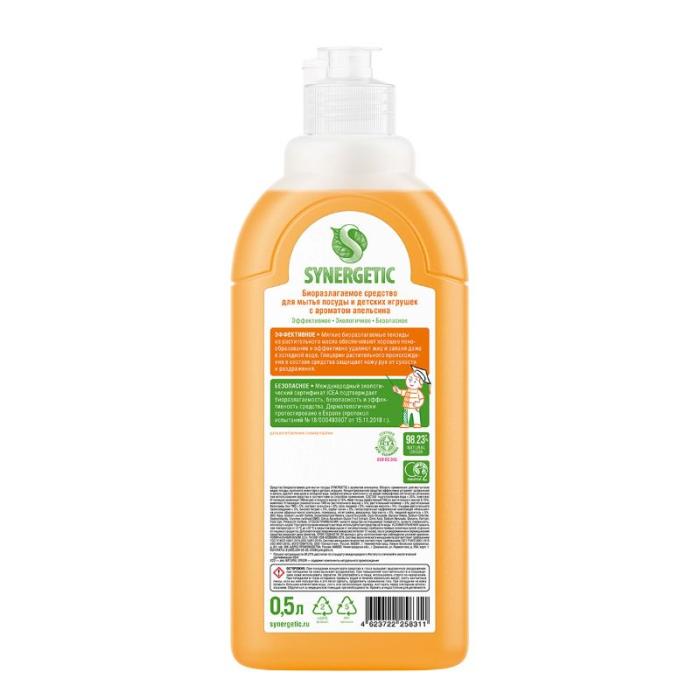 Биоразлагаемый концентрированный гель для посуды SYNERGETIC - это экологичное, безопасное и эффективное средство для мытья всех видов посуды, в том числе детской, кухонного инвентаря и детских игрушек от любых видов загрязнений. Мягкие биоразлагаемые тензиды из растительного масла обеспечивают хорошее пенообразование и эффективно удаляют жир и запахи даже в холодной воде. Глицерин растительного происхождения в составе средства защищает кожу рук от сухости и раздражения. Гипоаллергенная парфюмерная композиция на основе эфирных масел апельсина, померанца, петитгрейна, мандарина и бергамота придает средству свежий и приятный аромат. Гель дерматологически протестирован в Европе. Международный экологический сертификат ICEA подтверждает биоразлагаемость, безопасность и эффективность средства. Биоразлагаемые компоненты безопасны для природы и человека и не вредят микрофлоре септических установок при использовании средства в соответствии со способом применения.
