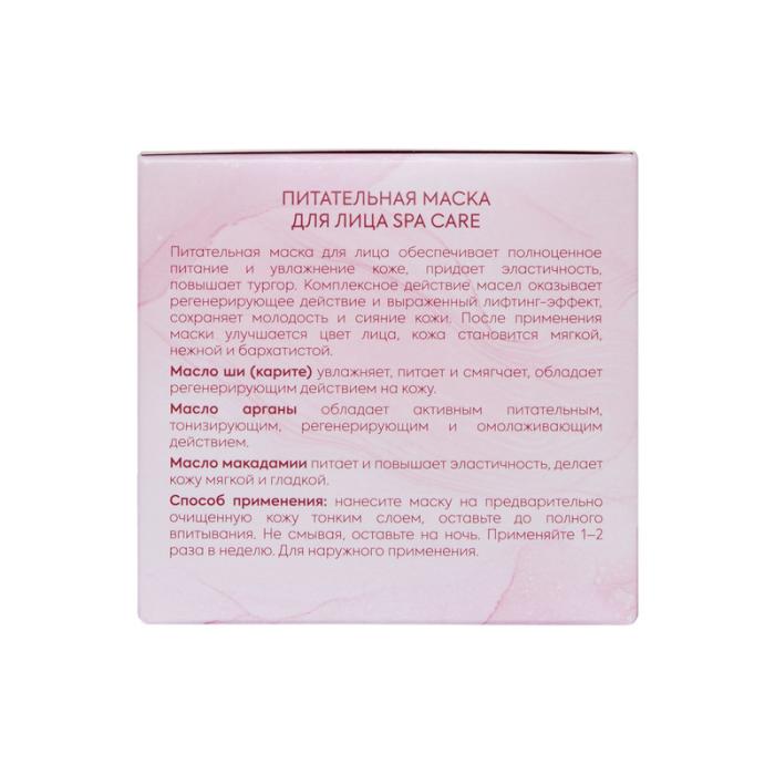 Питательная маска для лица SPA CARE обеспечивает полноценное питание и увлажнение коже, придает эластичность, повышает тургор. Комплексное действие масел оказывает регенерирующее действие и выраженный лифтинг-эффект, сохраняет молодость и сияние кожи. После применения маски улучшается цвет лица, кожа становится мягкой, нежной и бархатистой.