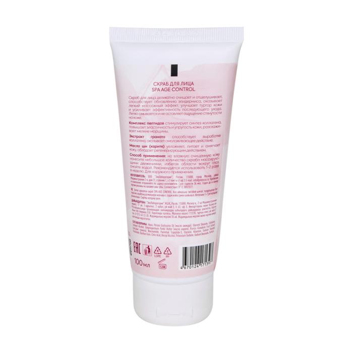 Скраб для лица SPA AGE CONTROL деликатно очищает и отшелушивает, способствует обновлению эпидермиса, оказывает легкий массажный эффект, улучшает тургор кожи и усиливает эффективность последующего ухода. Легко смывается и не оставляет ощущение стянутости на коже.