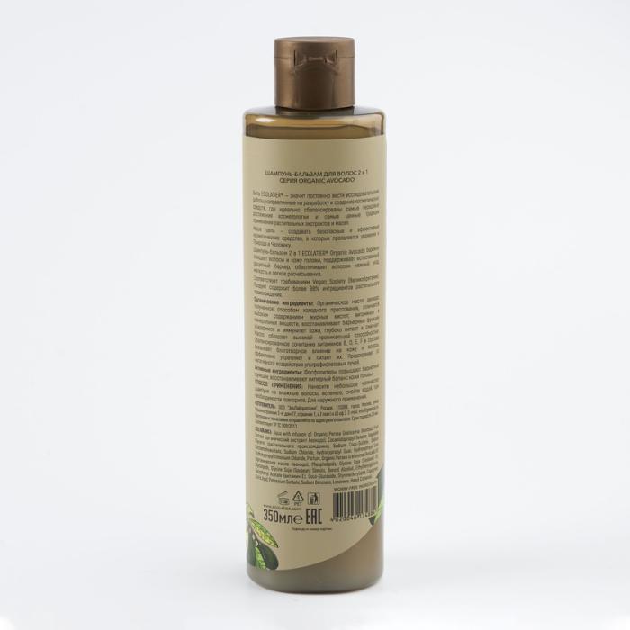 Шампунь-бальзам 2 в 1 ECOLATIER® Organic Avocado бережно очищает волосы и кожу головы, поддерживает естественный защитный барьер, обеспечивает волосам нежный уход, мягкость и легкое расчесывание.