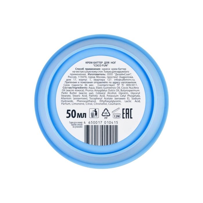 КРЕМ-БАТТЕР ДЛЯ НОГ "COCO FUN"CAFE MIMI COLOURS - яркие эмоции и незабываемые ощущения!Инновационные формулы на основе трендовых и функциональных ингредиентов, натуральных экстрактов и масел, в сочетании с вдохновляющими ароматами эффективно ухаживают за кожей и волосами. Создавай свои правила. Сочетай и экспериментируй.¶Будь собой, будь COLOURS!¶Крем-баттер обладает плотной текстурой, мгновенно тает на коже, глубоко питает, увлажняет и смягчает ее. Результат: мягкая, гладкая и увлажненная кожа.¶Аллантоин у
