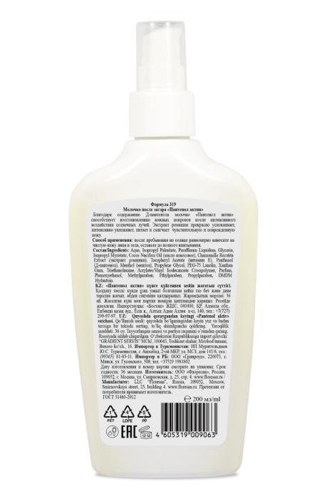 Благодаря содержанию Д-пантенола молочко Пантенол актив способствует восстановлению кожных покровов после интенсивного воздействия солнечных лучей. Экстракт ромашки прекрасно успокаивает, интенсивно увлажняет, питает и смягчает чувствительную и поврежденную кожу.- успокаивает и увлажняет кожу