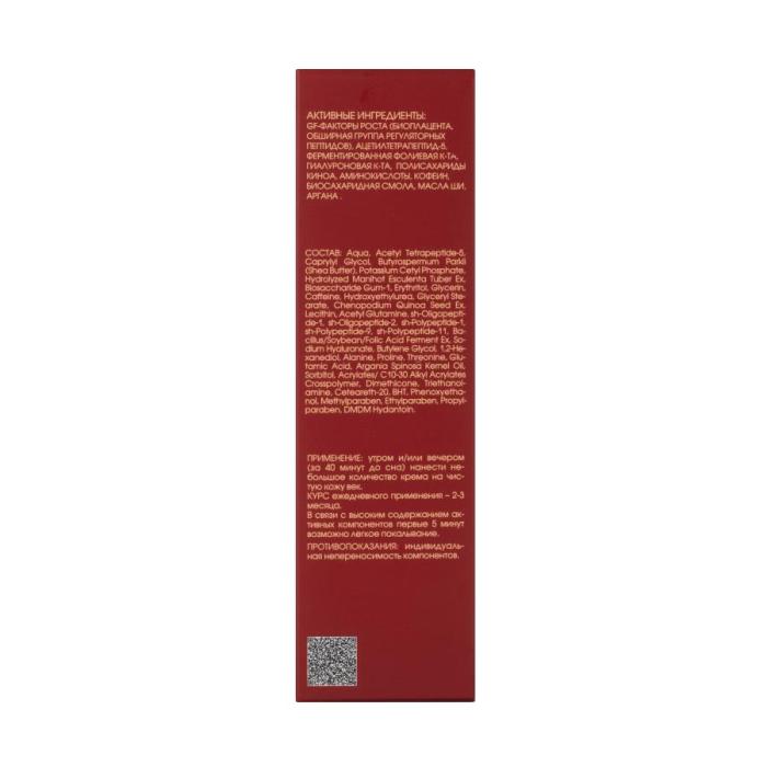 Уникальный крем anti age для области вокруг глаз создан для тонкой и нежной кожи век. GF-ФАКТОРЫ РОСТА (биоплацента, обширная группа регуляторных пептидов) стимулируют синтез коллагена, эластина и гиалуроновой кислоты, ускоряют процессы регенерации, обеспечивают упругость и плотность кожи; SYN EYE (комплекс из трипептида, пантенола, гиалуроновой кислоты и экстракта микроводорослей) в сочетании с КОФЕИНОМ заметно разглаживает морщины, отеки и темные круги вокруг глаз; Натуральные растительные протеины и м