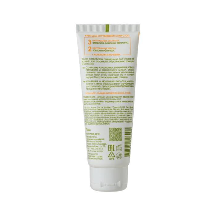 Крем разработан специально для ухода за кожей стоп, склонной к образованию трещин и мозолей.