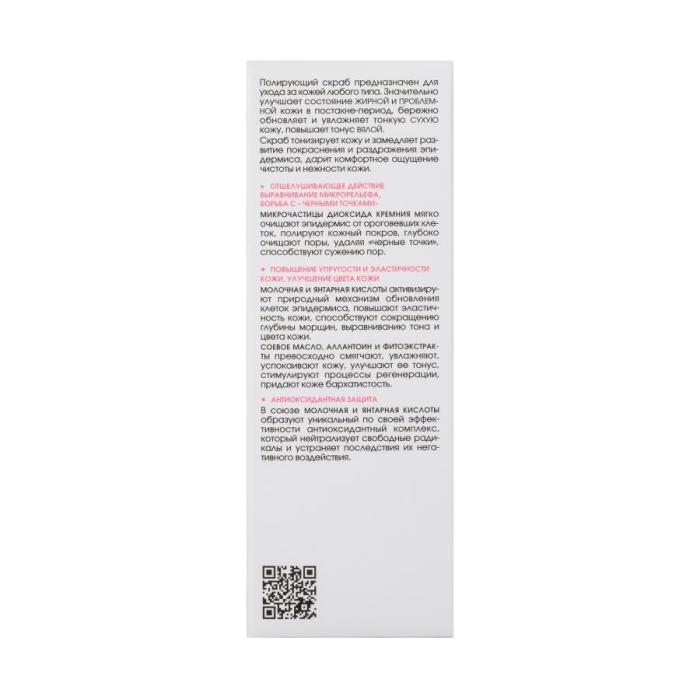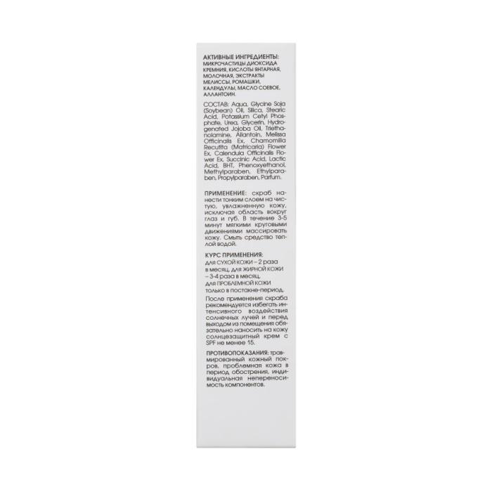 Частички диоксида кремния и гранулы жожоба, являясь натуральным абразивом, нежно и бережно избавят лицо от ороговевших клеток, тщательно отполируют кожу, глубоко очистят поры и удалят черные точки.