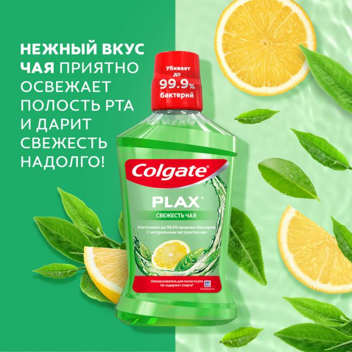 Не содержащая спирта формула ополаскивателя для рта Colgate® Plax® Свежесть чая содержит экстракты чая, обеспечивающие освежающий и приятный вкус чая.