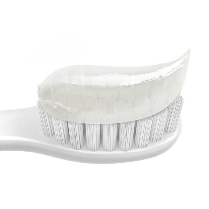 1. Небольшое количество зубной пасты нанести на зубную щетку