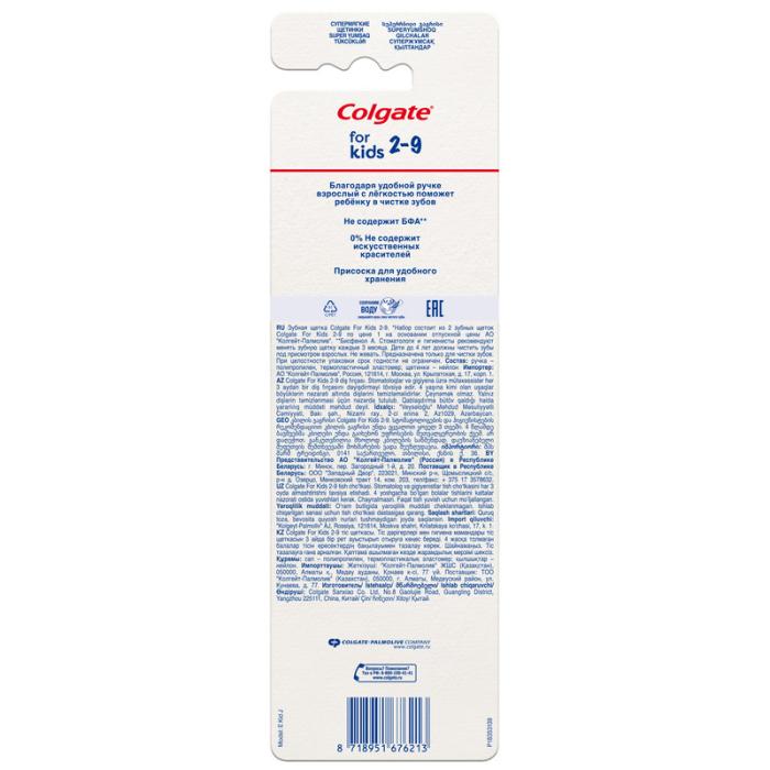 Щетка для детей, предназначенная для зубов от Colgate 2 — 9 лет (2шт) с ультра мягкими щетинками специально разработана для вашего ребенка. Она идеально подходит для развития навыков гигиены полости рта, а благодаря симпатичным обезьянкам на ручке и удобной присоске ежедневная чистка зубов станет удовольствием и интересной активностью!