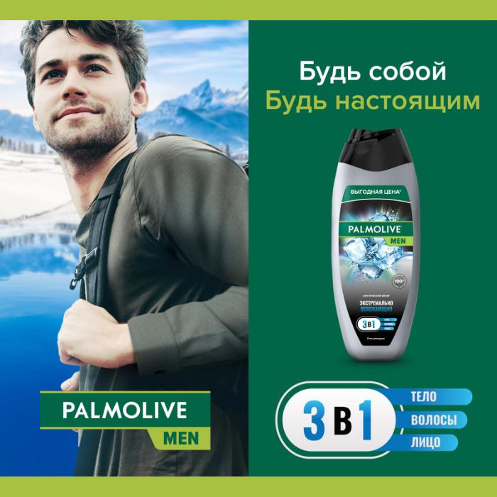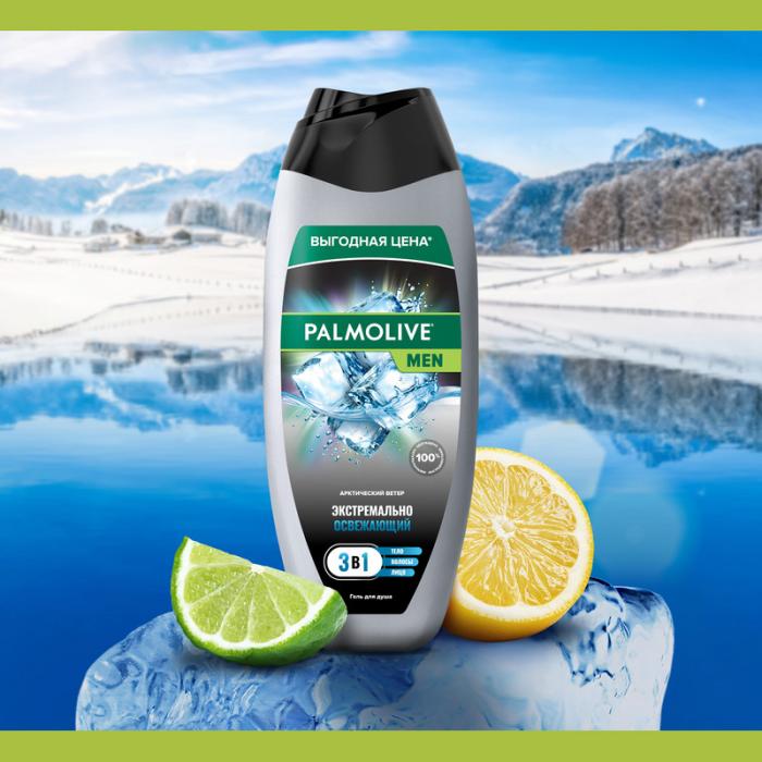 Гель для душа мужской Palmolive MEN Арктический ветер создан в комплексном уходе 3 в 1: для тела, волос и лица.
