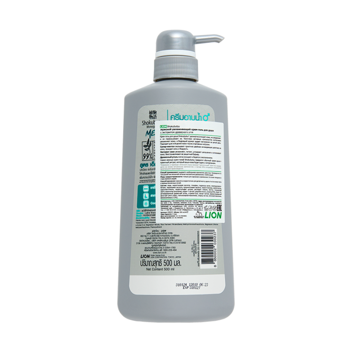Shokubutsu Крем-гель для душа с экстрактом древесного угля увлажняющий /муж/ 500 мл