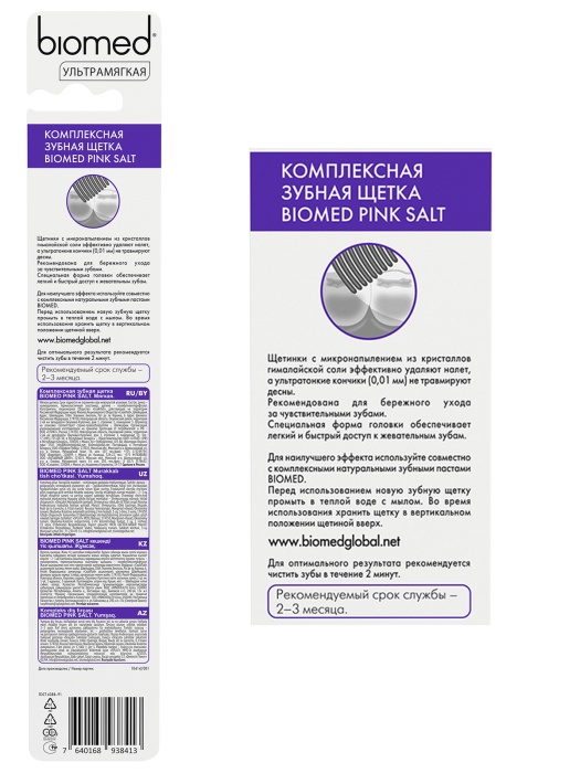 Зубная щетка Biomed® Pink Salt — забота о чувствительных зубах и деснах. • УЛЬТРАМЯГКИЕ щетинки обеспечивают деликатное очищение без повреждений эмали и десен • ЩЕТИНА С ГИМАЛАЙСКОЙ СОЛЬЮ нейтрализует кислый pH в полости рта, снижая риск развития кариеса • УТОНЧЕННЫЕ КОНЧИКИ ЩЕТИНЫ очищают места, где наиболее часто образуется кариес – придесневые участки, межзубные промежутки, углубления жевательных поверхностей, не травмируя десны