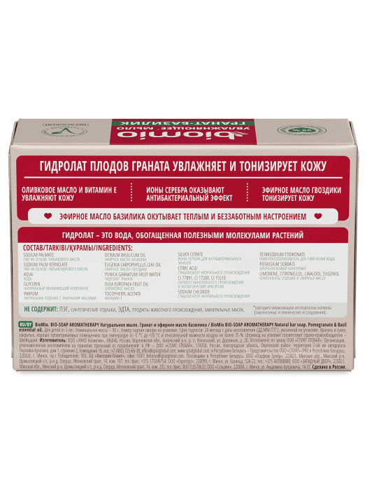 BIO-SOAP AROMATHERAPY Натуральное мыло Гранат и эфирное масло базилика 90 г