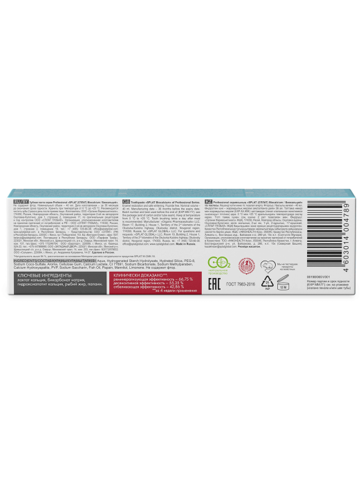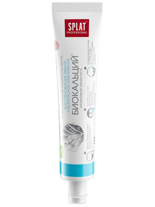 Зубная паста SPLAT Professional «Биокальций» восстанавливает эмаль и снижает чувствительность зубов. Она насыщает зубы природным кальцием, укрепляя их и восстанавливая поврежденные участки. Гидроксиапатит действует идентично пломбе, «замуровывая» микротрещины на поверхности эмали. Натуральный фермент папаин в сочетании с компонентом Polydon® препятствуют образованию налета и зубного камня. Инновационная система Sp.White System® безопасно отбеливает зубы.