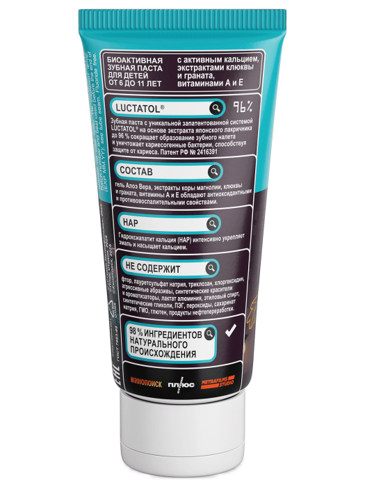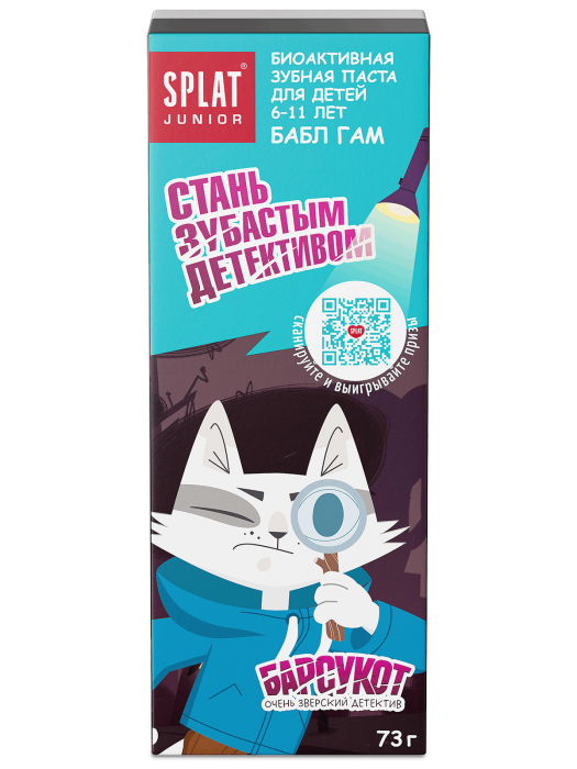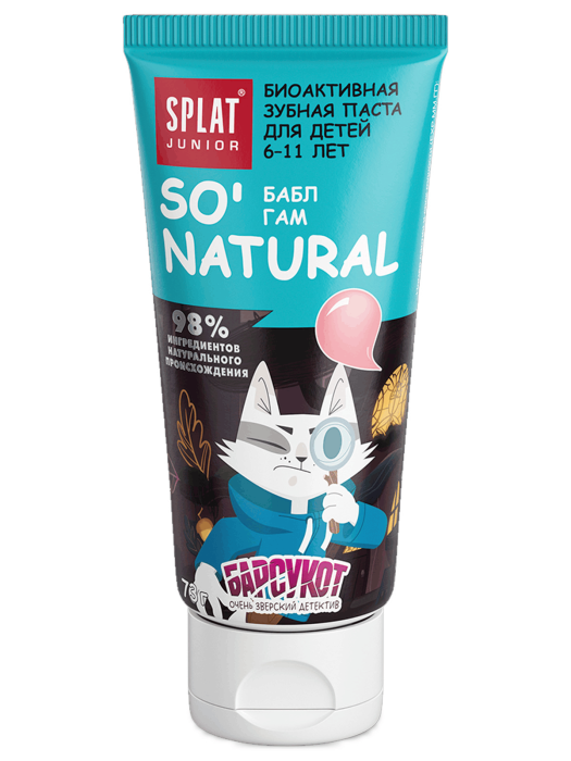 Вкусная и эффективная зубная паста для детей 6-11 лет SPLAT Junior «Бабл Гам» на 98% состоит из натуральных компонентов. Запатентованная система Luctatol® с экстрактом лакричника сокращает образование налета и защищает от кариеса. Гидроксиапатит кальция укрепляет эмаль. Гель алоэ вера и экстракты растений оказывают противовоспалительное действие. Вкус Бабл Гама* и «космический» дизайн зубной пасты Junior порадуют юных исследователей! *Не предназначено для приема внутрь