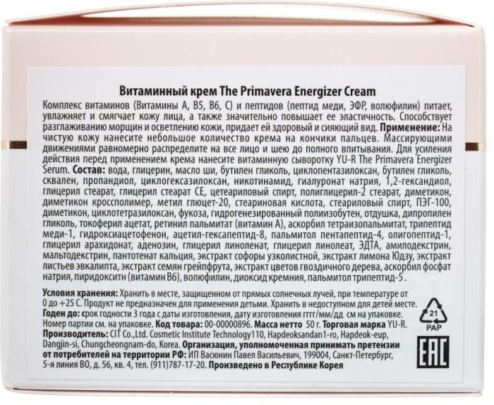 Восстанавливающий витопептидный крем The Primavera Energizer Cream 50 мл