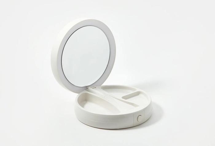 Зеркало 10x настольное раскладное с подсветкой круглое. В макияже и уходе за собой свет также важен, как и в фотографии. Поэтому во всех фильмах мы видим много-много лампочек вокруг зеркала в гримерной у артистов. В квартирах часто не хватает освещения, а тем более общий свет не подойдет для макияжа. Здесь важен точечный свет. И данное зеркало разработано именно исходя из этих недостатков обычной жизни.