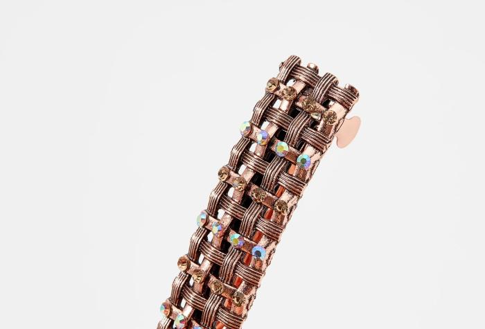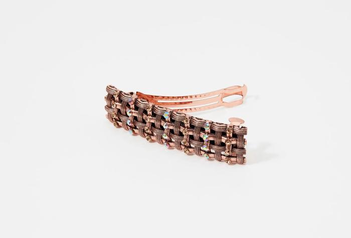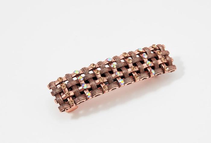 Стильная и удобная заколка для густых волос плетеная со стразами бронзовая металлическая 1 шт