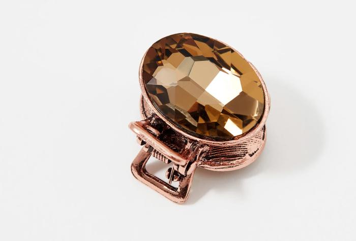 Стильная и удобная заколка для густых волос с камнем-кристалом бронзовая металлическая 1 шт