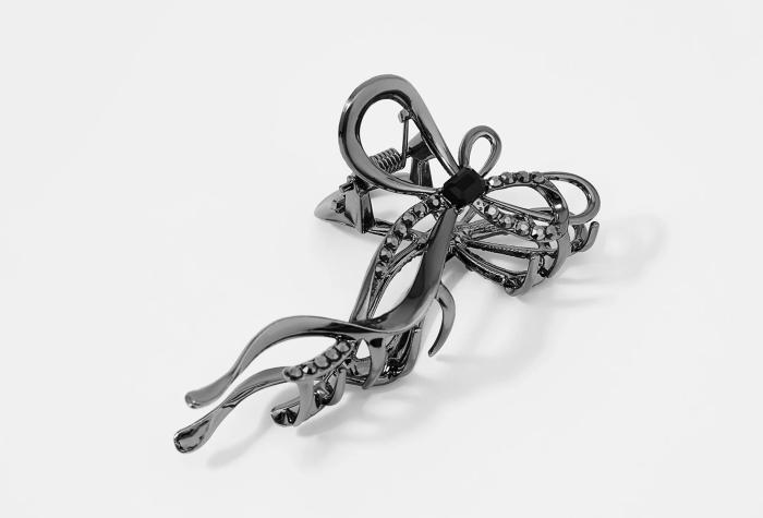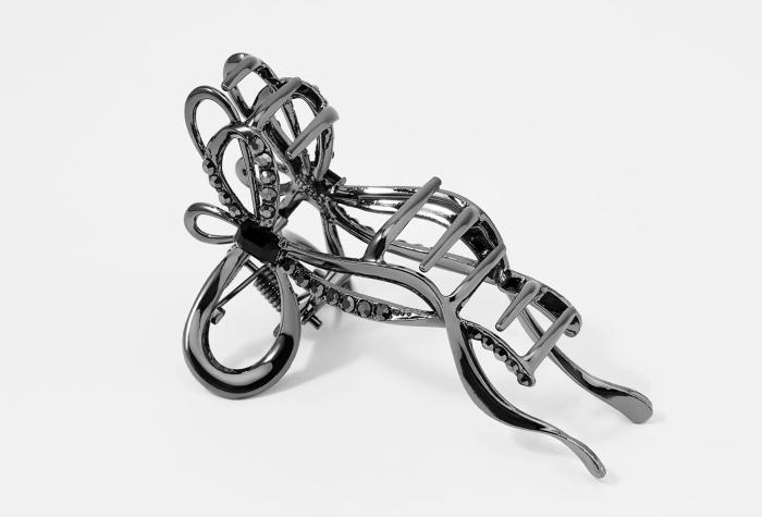 Стильная и удобная заколка для густых волос со стразами серебристо-черная металлическая 1 шт