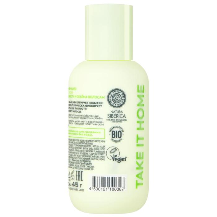 Придаёт прикорневой объём, абсорбирует избыток себума, мгновенно освежает прическу, фиксирует укладку, не оставляя липкости и не утяжеляет волосы.