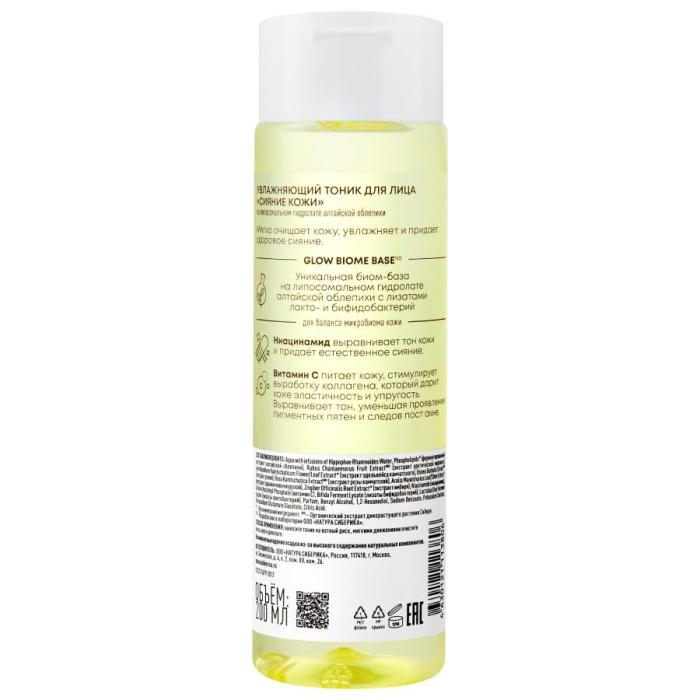 Увлажняющий тоник для лица «Сияние кожи» Бережно очищает кожу, увлажняет и придает ей здоровое сияние.