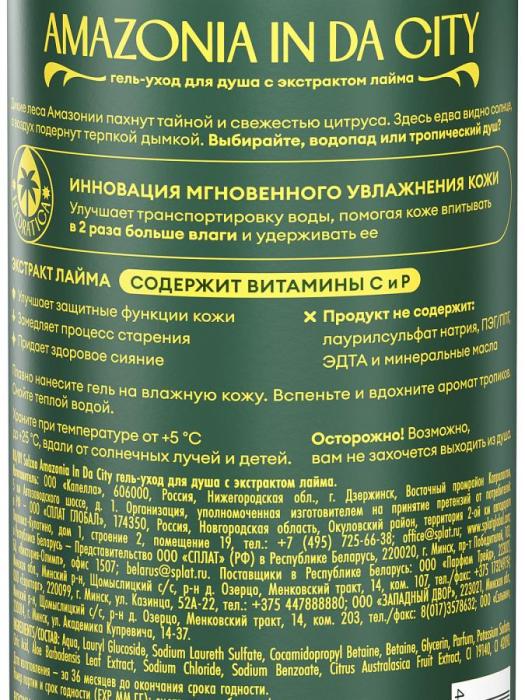 Гель-уход для душа Amazonia In Da City с экстрактом лайма 400 мл