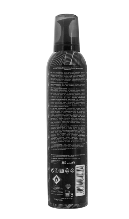 Способ применения: Для фиксирования укладки и создания объема нанесите мусс на влажные или сухие волосы. Приступите к укладке.