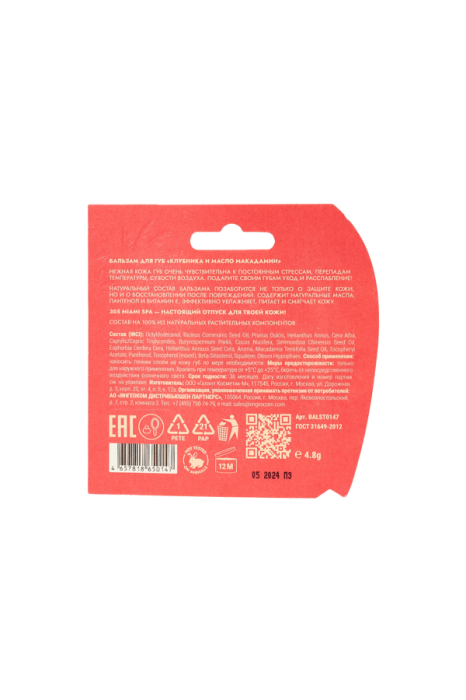 Бальзам для губ увлажняющий с защитой от ультрафиолета 4,8 г