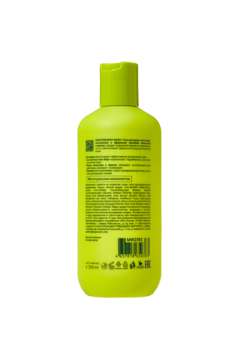 Увлажняющий гель для душа с алоэ вера, пантенолом и эфирными маслами апельсина и лимона. 300 мл