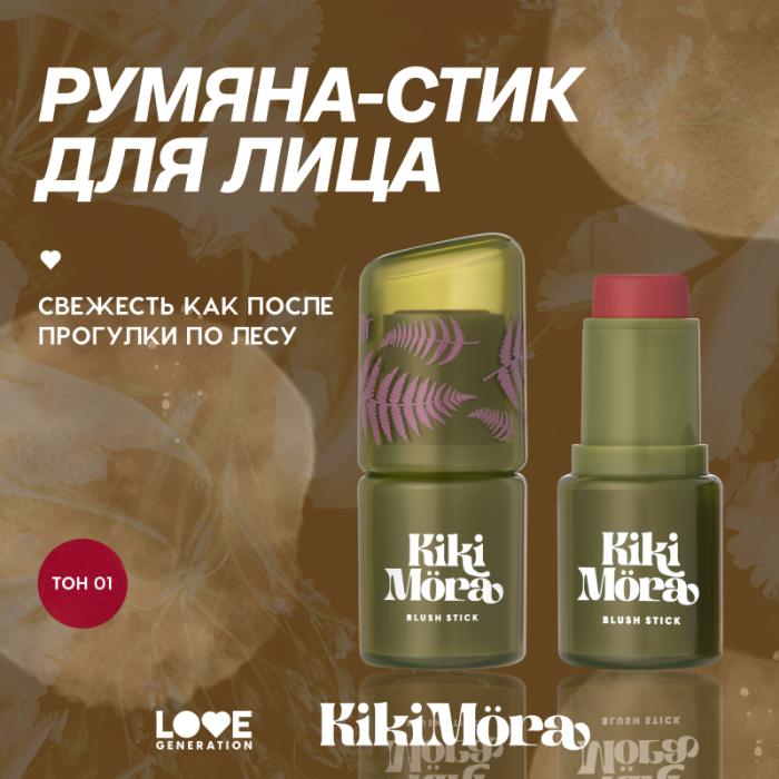 Румяна в стике KIKIMORA для тех, кто любит румянец как после прогулки на свежем воздухе. Ультраудобный формат и текстура, которая не матовая и не сияющая, а что-то между нежным кремом и тончайшей вуалью. Румяна буквально сливаются с кожей и выглядят максимально гармонично. Они настолько невесомые и пластичные, что легко наносятся и тушуются как кисточкой, так и спонжем, а можно даже пальчиками.