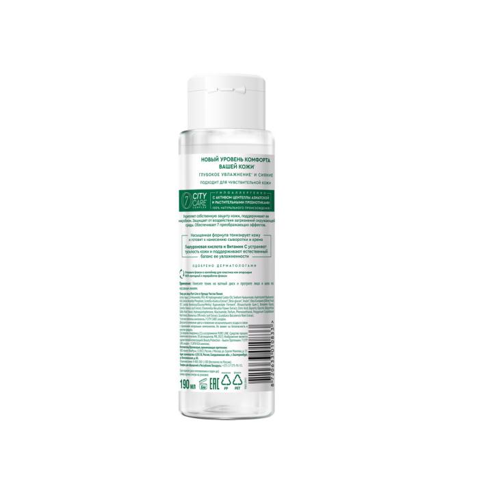 Испытайте новый уровень комфорта вашей кожи' с гипоаллергенным тонером для всех типов кожи Pure Line от бренда Чистая Линия. 7 CITY CARE COMPLEX – 7 СИТИ КЕА комплекс укрепляет собственную защиту кожи, поддерживает ее микробиом, защищает от воздействия загрязнений окружающей среды и обеспечивает 7 преображающих эффектов. Витамин С и гиалуроновая кислота устраняют тусклость кожи и поддерживают естественный баланс ее увлажненности. ['] в ассортименте бренда Чистая Линия.
