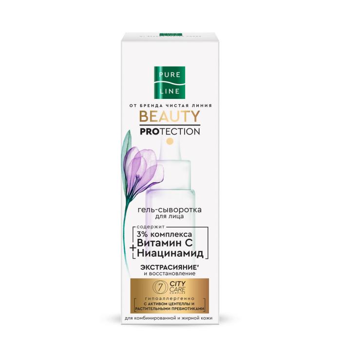 Новый уровень комфорта вашей кожи' теперь доступен с продуктами Pure Line от бренда Чистая Линия. Гипоаллергенная гель-сыворотка, созданная с учетом всех потребностей жирной и комбинированной кожи, содержит ниацинамид и витамин С, 7 CITY CARE complex – 7 СИТИ КЕА комплекс с активом центеллы и растительными пребиотиками. Невесомая гелевая текстура легко впитывается и не оставляет неприятной пленки. Результат: сияющая, ровная кожа, жирный блеск сокращен. ['] в ассортименте бренда Чистая Линия.