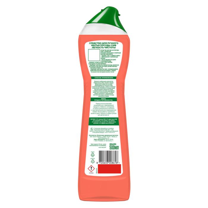 Новинка от бренда Сиф – средство для мытья посуды Сиф красный апельсин и эвкалипт. Гель для мытья посуды Сиф – это густое, эффективное и экономичное средство, которое поможет отмыть более 2500 тарелок! Густая формула геля для мытья посуды Сиф удаляет 100% стойкого жира и легко смывается даже в холодной воде. Средство подходит для мытья любой посуды, детских игрушек (кроме мягких), а так же для мытья плит, холодильников и других поверхностей, контактирующих с пищей. Бережно к коже рук.