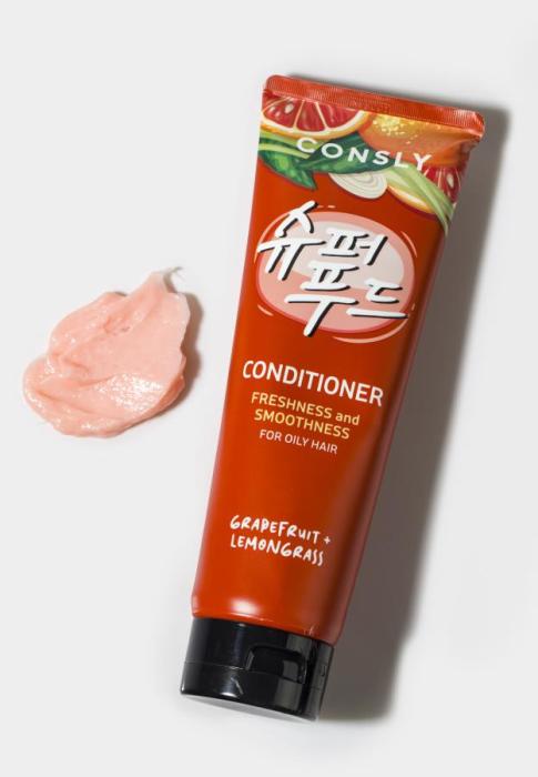 Нанесите кондиционер на влажные вымытые волосы, равномерно распределите по всей длине, оставьте на 1-2 минуты и смойте теплой водой. Для максимального результата используйте с глубоко очищающим шампунем с экстрактами грейпфрута и лемонграсса, Consly.